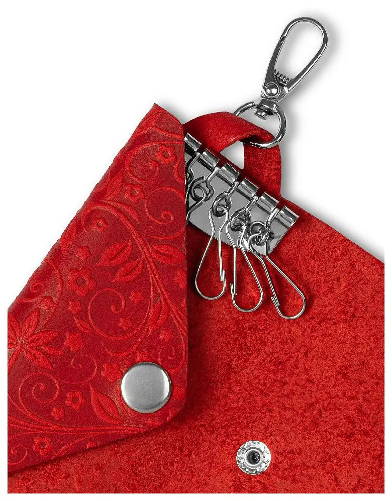 Ключница из натуральной кожи на кнопке, красная, тиснение "Флаверс"