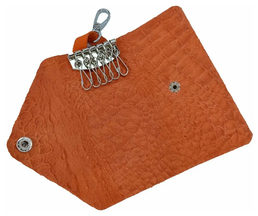 Ключница из натуральной кожи на кнопке, рыжая, тиснение "Данди"