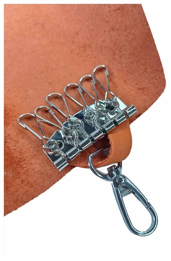 Ключница из натуральной кожи на кнопке, рыжая, тиснение "Котики"