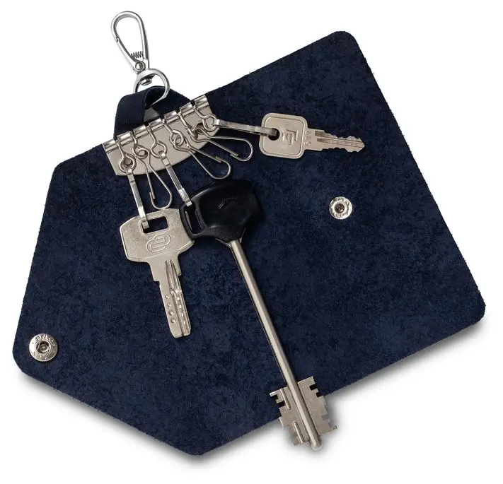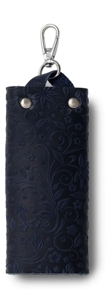 Ключница из натуральной кожи на кнопке, синяя, тиснение "Флаверс"