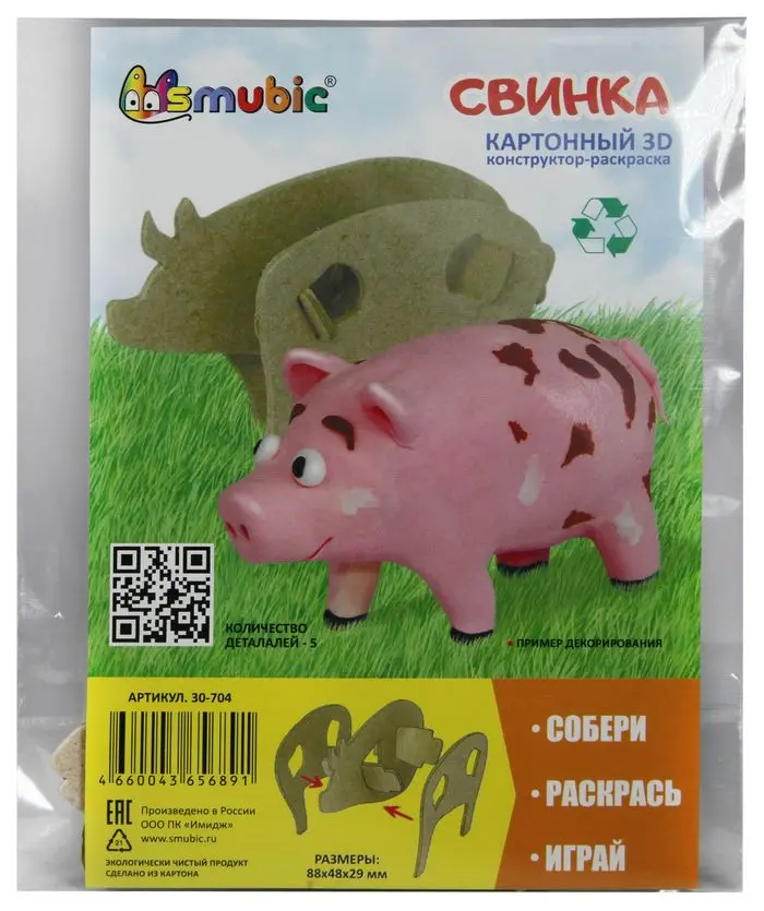 Конструктор-Раскраска "Свинка с фермы", в пакете с европодвесом
