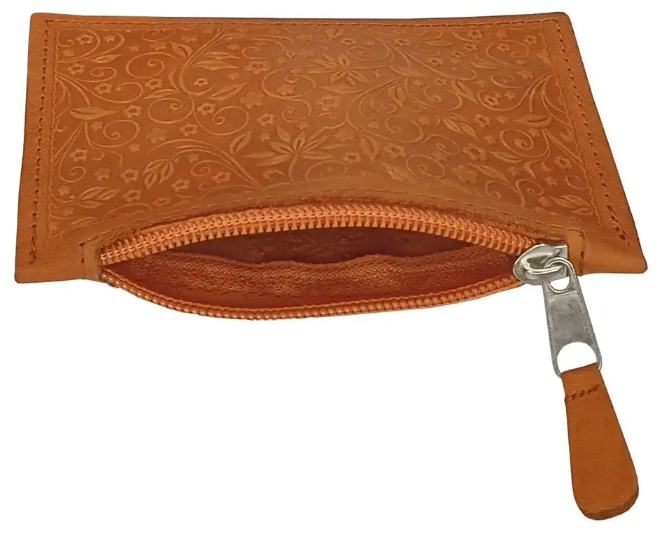 Красивый и модный кошелек для монет выполнен из натуральной кожи с блинтовым тиснением. Денежный мешочек имеет застежку-молнию. Мешочек для монет имеет небольшие размеры, что позволяет поместить его в карман или отделение сумки. Кошелек для мелочи несложно захватить с собой.