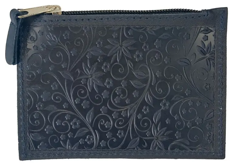 Кошелек для монет из натуральной кожи 12x8 см, синий, тиснение по коже конгрев "Флаверс"
