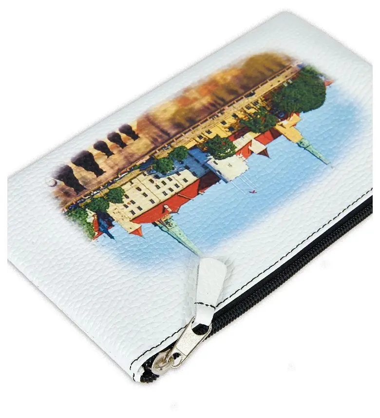 Косметичка из натуральной кожи 21x0,5x12,5 см, цветной рисунок по коже "Пять котов"