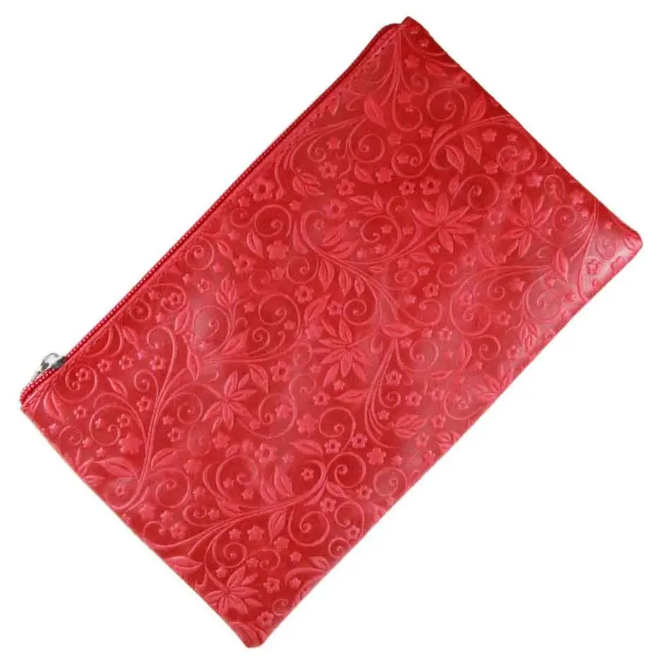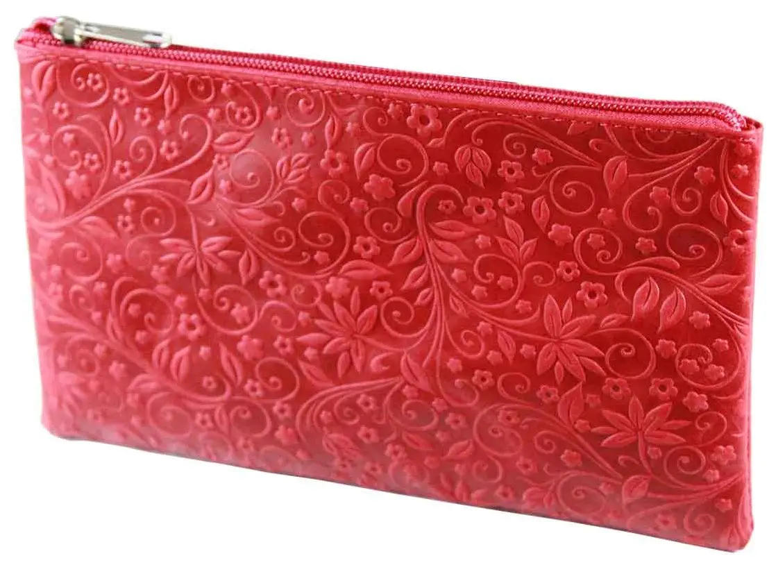 Косметичка из натуральной кожи 21x0,5x12,5 см, красная, тиснение по коже конгрев "Флаверс"
