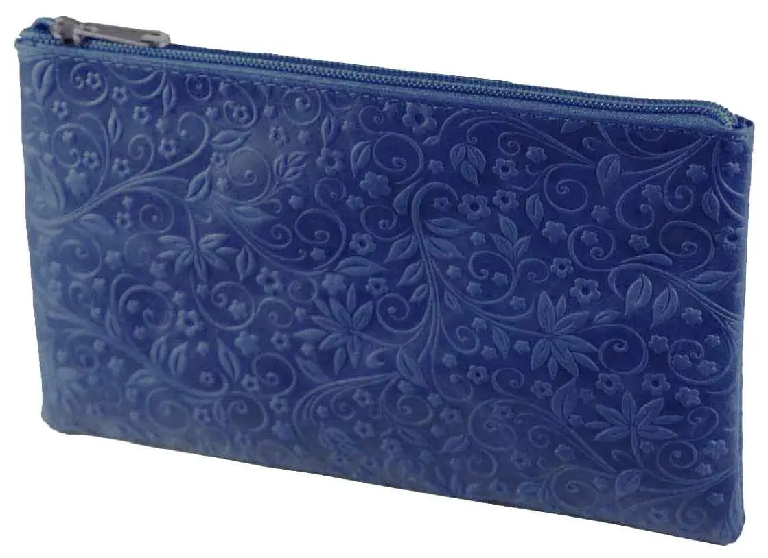 Косметичка из натуральной кожи 21x0,5x12,5 см, синяя, тиснение по коже конгрев "Флаверс"