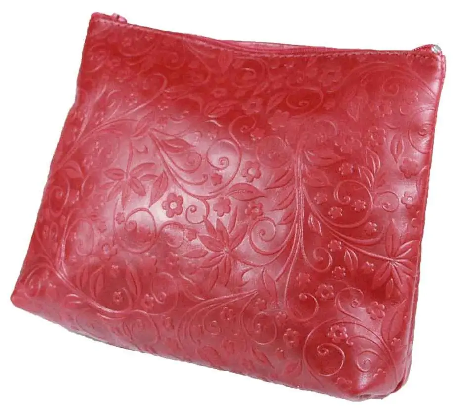 Косметичка из натуральной кожи 21x0,5x12,5 см, красная, тиснение по коже конгрев "Флаверс"