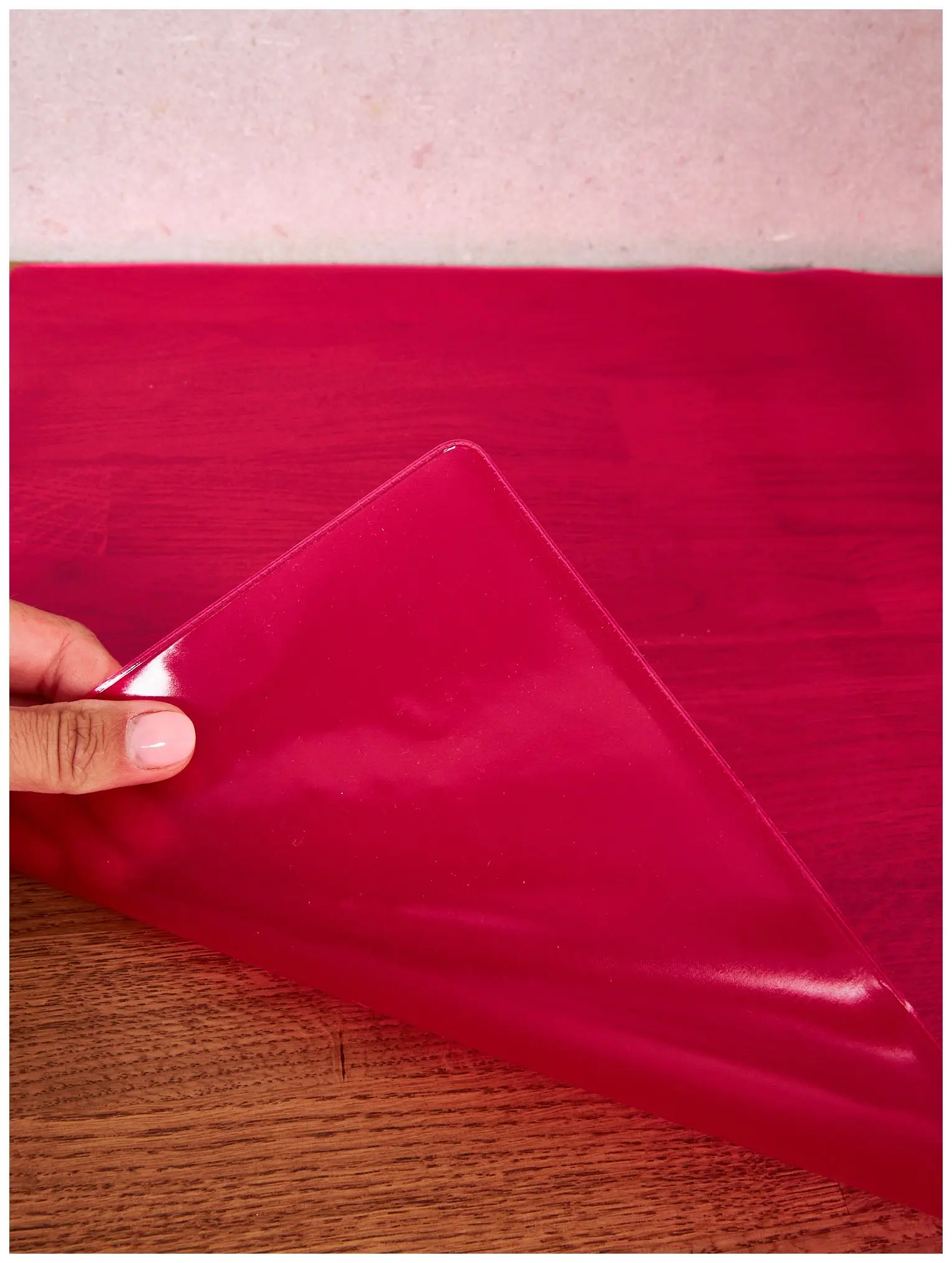 Настольный коврик из матового красного ПВХ – 500 мкм. Размер 450*550 мм. Прочный материал предохранит Ваш стол от разного рода повреждений и обеспечит удобство при письме.