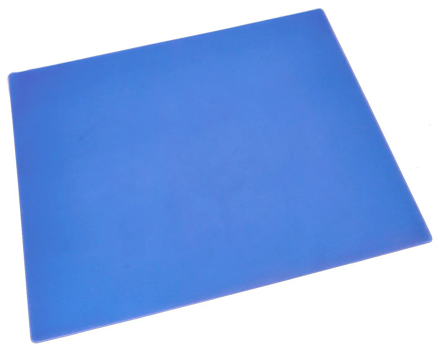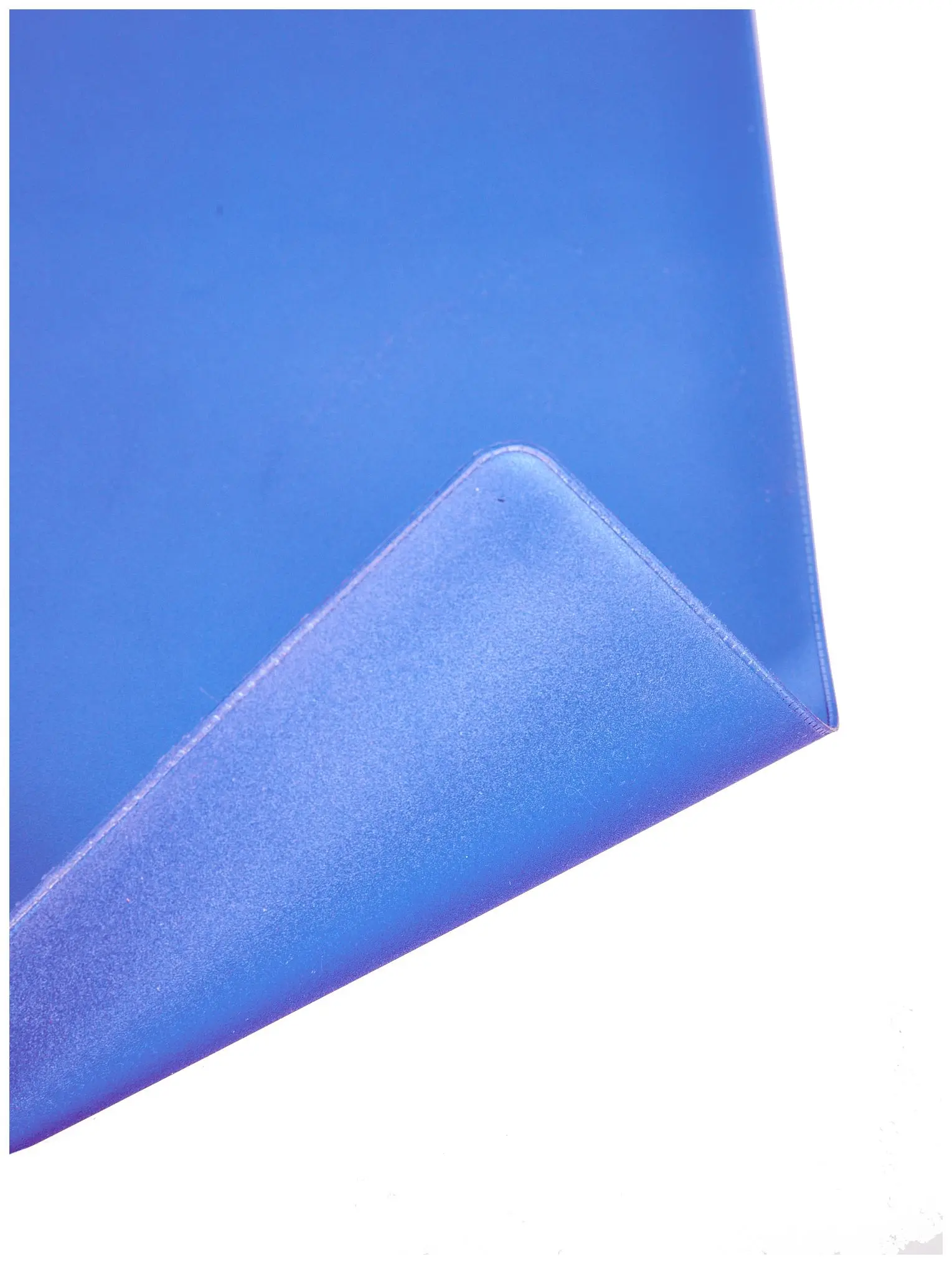 Настольный коврик из матового синего ПВХ – 500 мкм. Размер 450*550 мм. Прочный материал предохранит Ваш стол от разного рода повреждений и обеспечит удобство при письме.