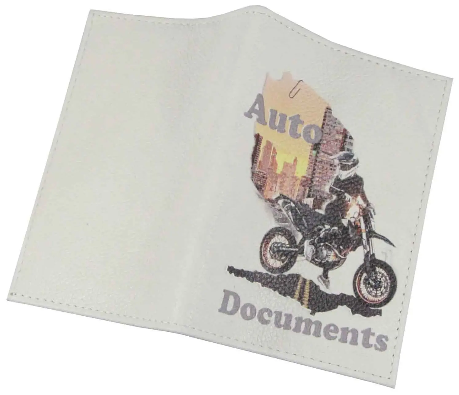 Обложка для автодокументов из натуральной кожи, цветной рисунок по коже "Мотоцикл"
