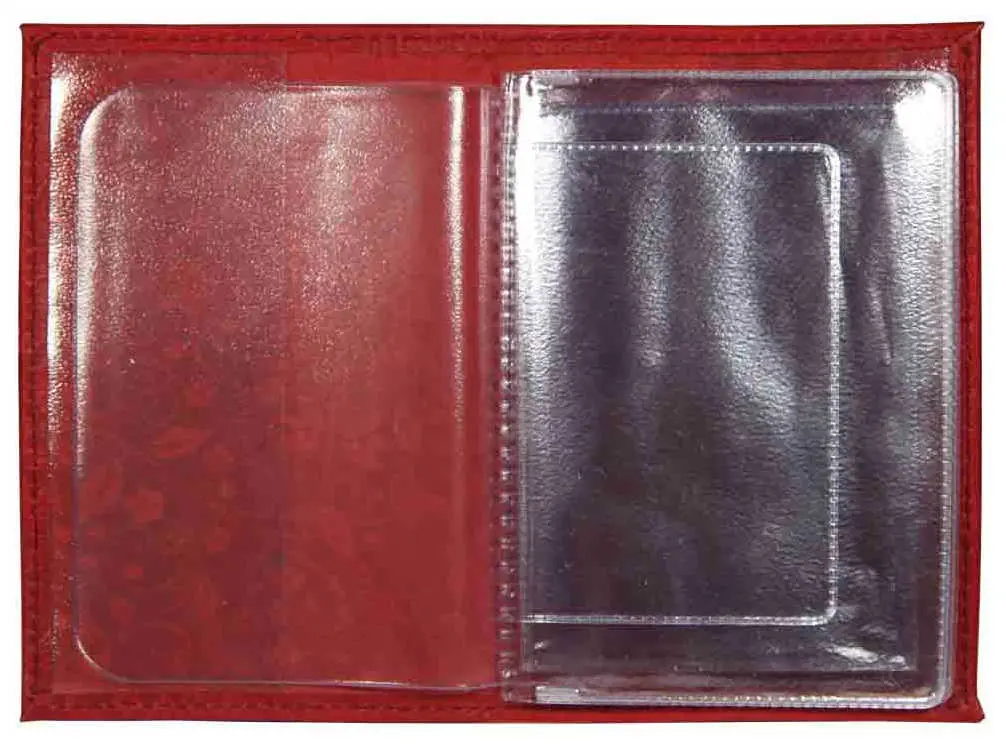 Обложка для автодокументов из натуральной кожи, красный, сплошное тиснение по коже "Флаверс"