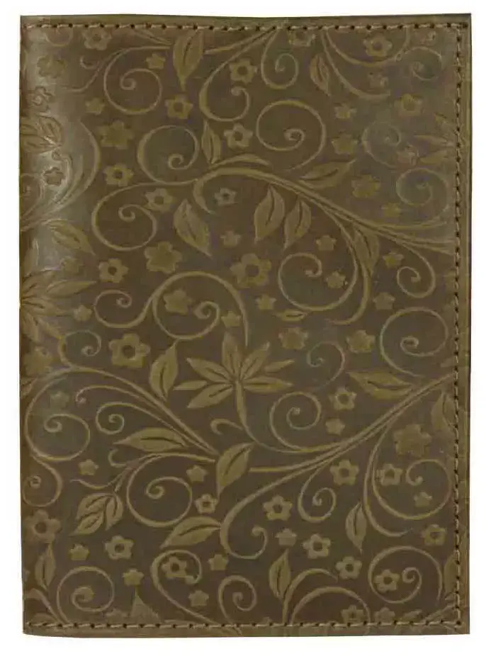 Обложка для автодокументов из натуральной кожи, оливковый, сплошное тиснение по коже "Флаверс"