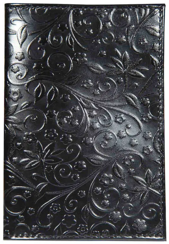 Обложка для паспорта из лакированной натуральной кожи, черный, сплошное тиснение по коже "Флаверс"