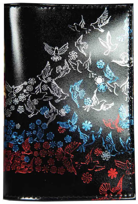 Обложка для паспорта из лакированной натуральной кожи, черный, тиснение тремя цветами "Летящий Флаг"