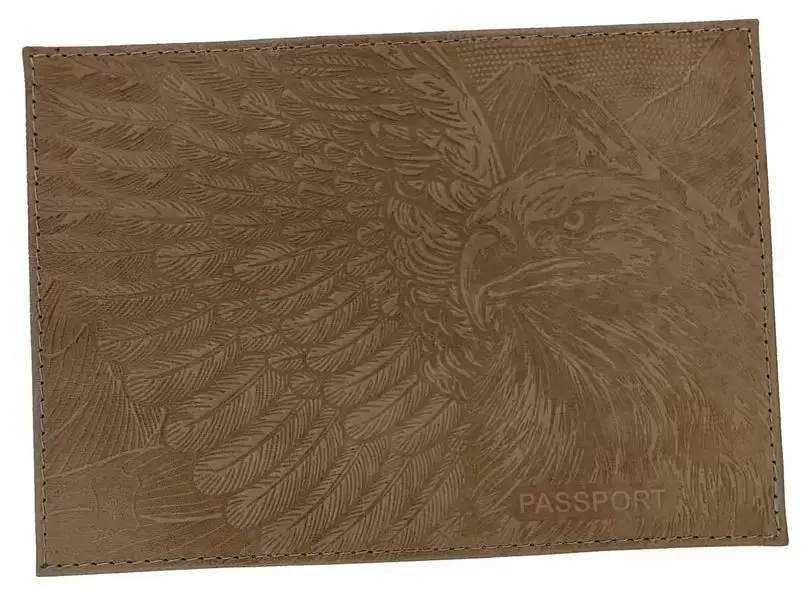 Обложка для паспорта из натуральной кожи, бежевый, сплошное тиснение по коже "Орел"
