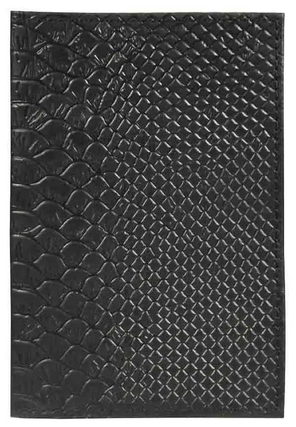 Обложка для паспорта из натуральной кожи, черный, сплошное блинтовое тиснение по коже "Питон"