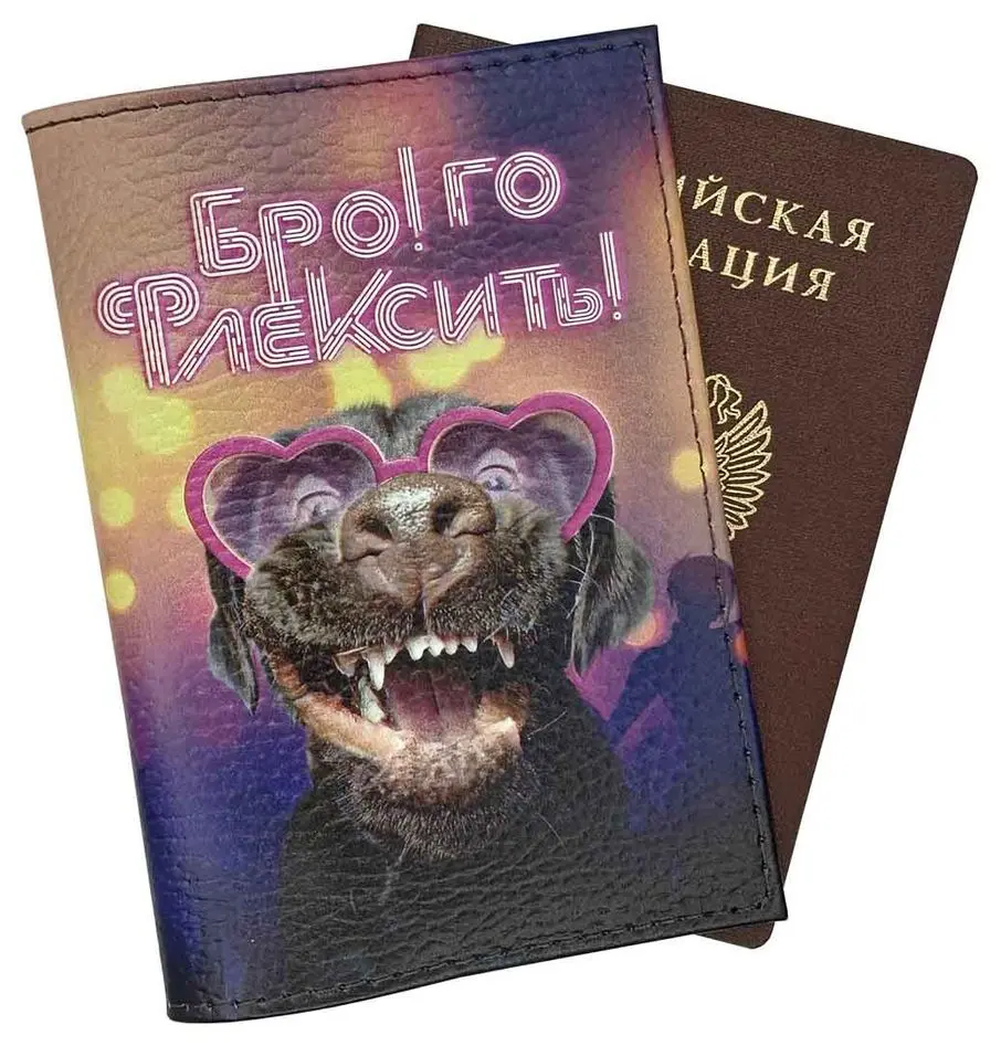 Обложка для паспорта из натуральной кожи, цветной рисунок по коже "Бро! го Флексить!"