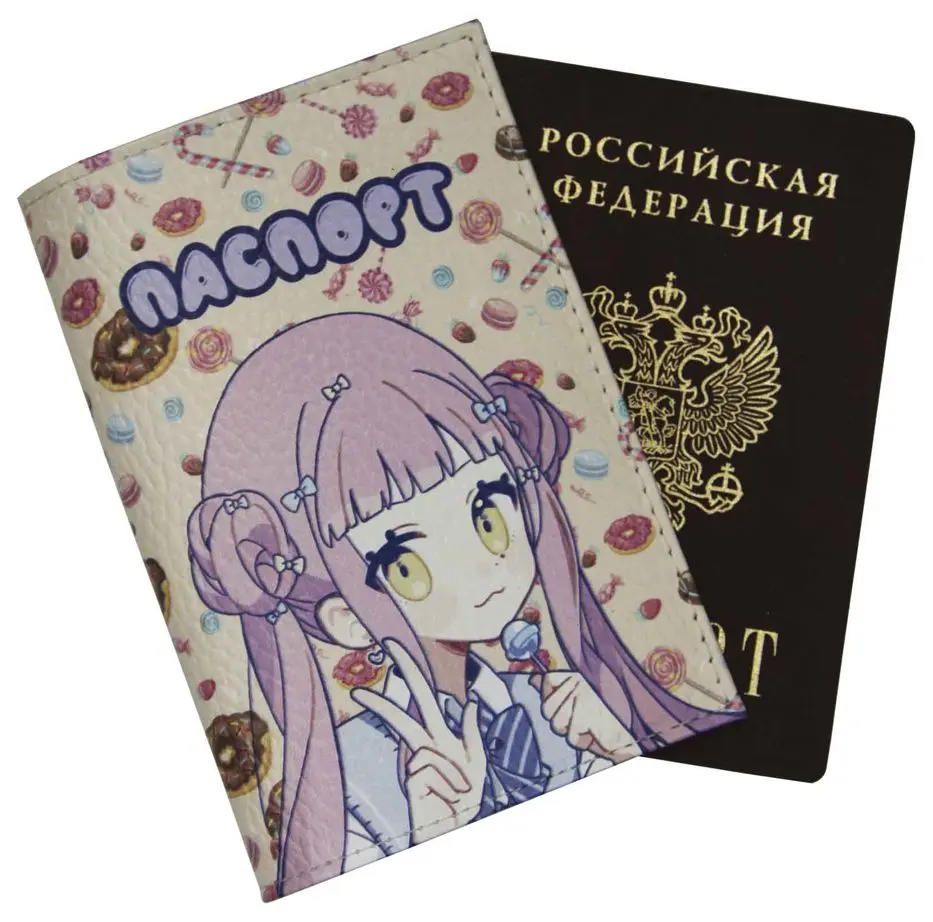 Обложка для паспорта из натуральной кожи, цветной рисунок по коже "Чупа-чупс"