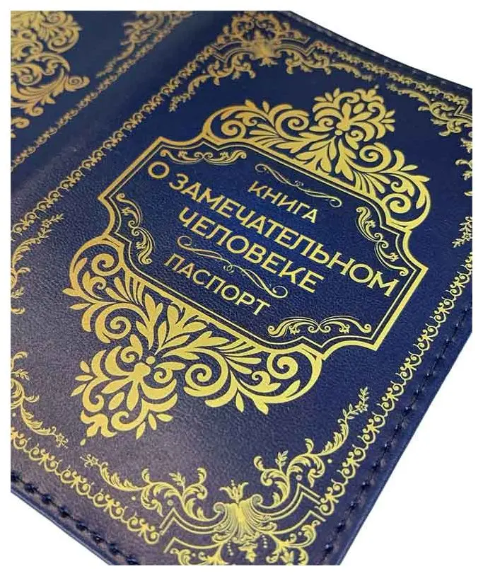 Обложка для паспорта из натуральной кожи, цветной рисунок по коже "Книга о замечательном человеке"