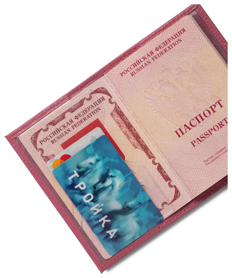 Обложка для паспорта из натуральной кожи Флотер, розовый, тисн.конгрев "PASSPORT"