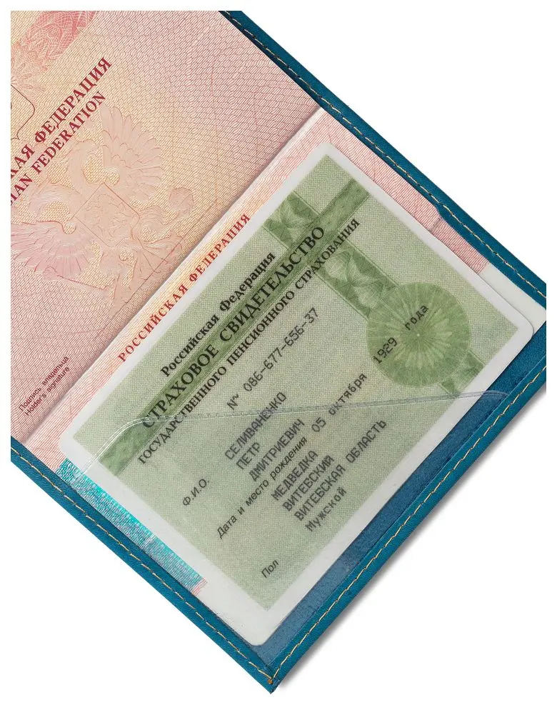 Обложка для паспорта из натуральной кожи, голубой, с кармашком "Джинсики"