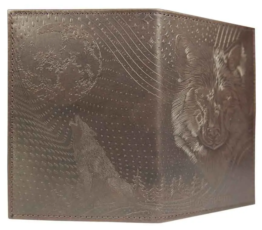 Обложка для паспорта из натуральной кожи, коричневый, сплошное тиснение по коже "Волк"