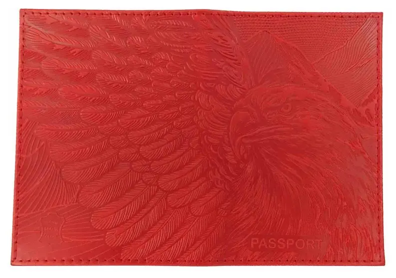 Обложка для паспорта из натуральной кожи, красный, сплошное тиснение по коже "Орел"