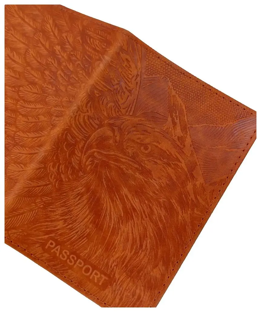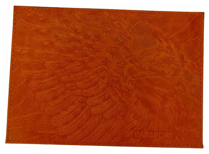 Обложка для паспорта из натуральной кожи, рыжий, сплошное тиснение по коже "Орел"