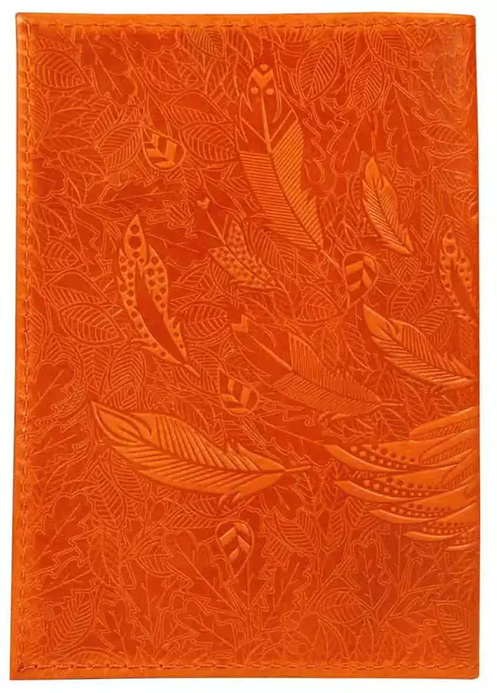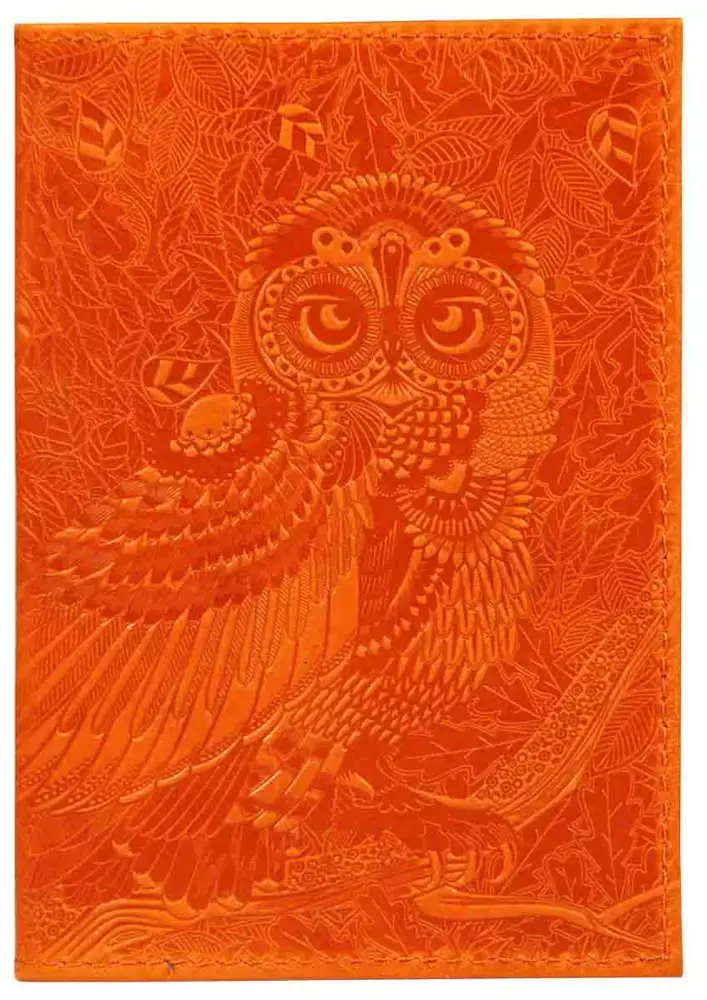 Обложка для паспорта из натуральной кожи, рыжий, сплошное тиснение по коже "Сова"