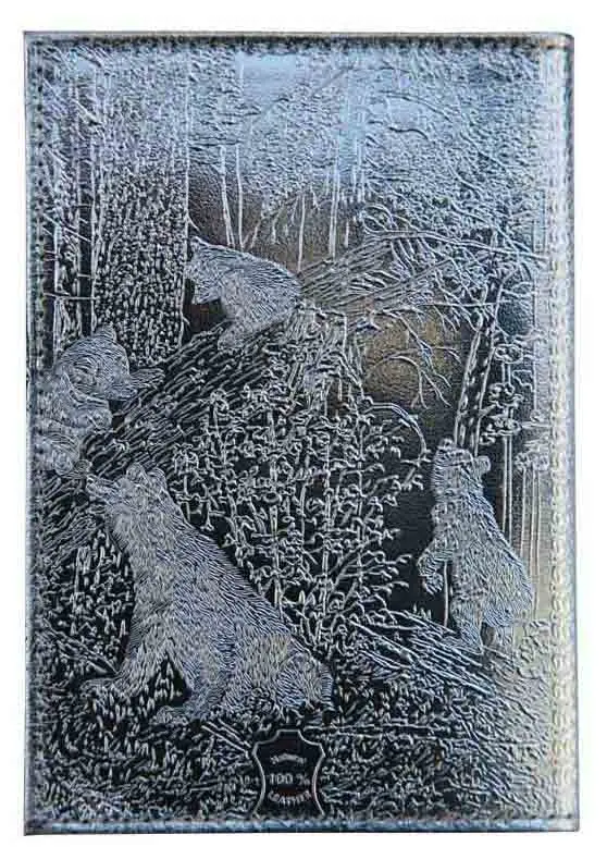 Обложка для паспорта из натуральной кожи, серебряный, сплошное тиснение фольгой "металлик" по коже "Медведь 3D"