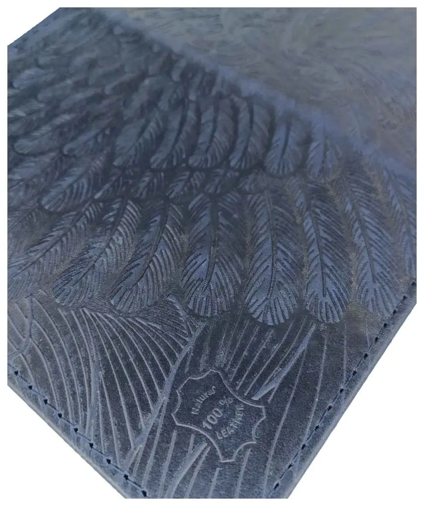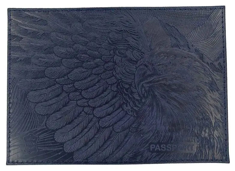 Обложка для паспорта из натуральной кожи, синий, сплошное тиснение по коже "Орел"