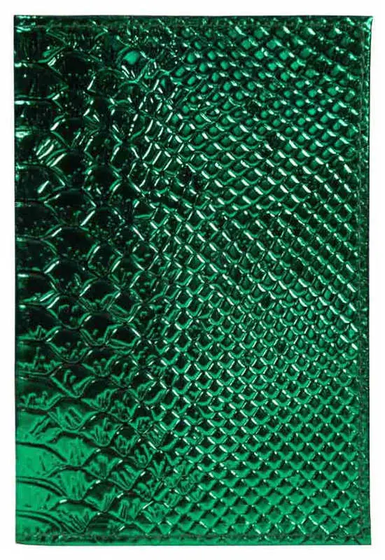 Обложка для паспорта из натуральной кожи, зеленый, сплошное тиснение фольгой "металлик" по коже "Железный Питон"
