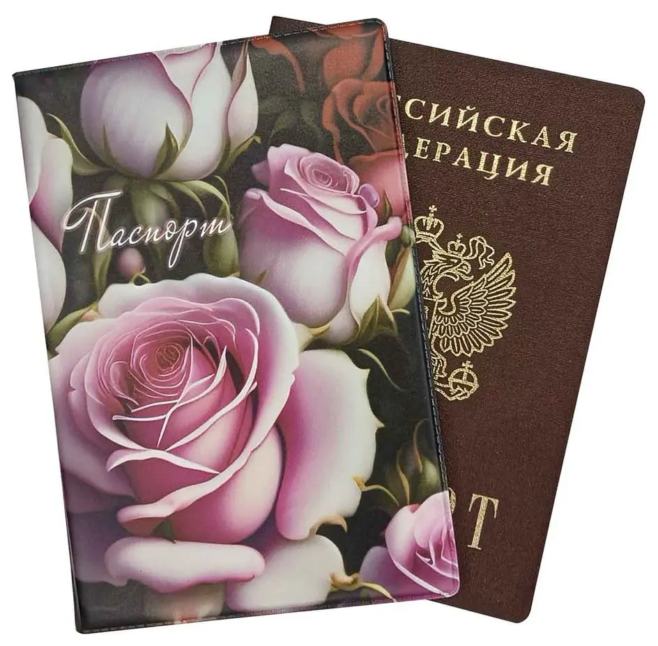 Обложка для паспорта, ПВХ матовый с печатью, принт "Пленительные розы"
