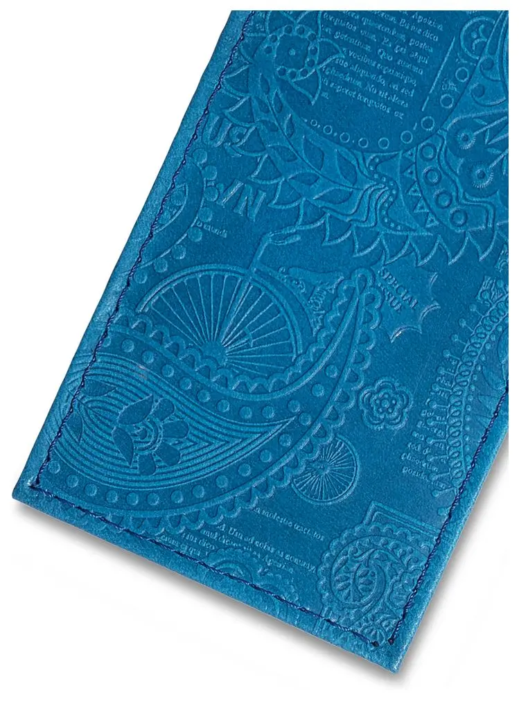Обложка для проездного билета из натуральной кожи, голубой, сплошное тиснение по коже "Индийский орнамент"