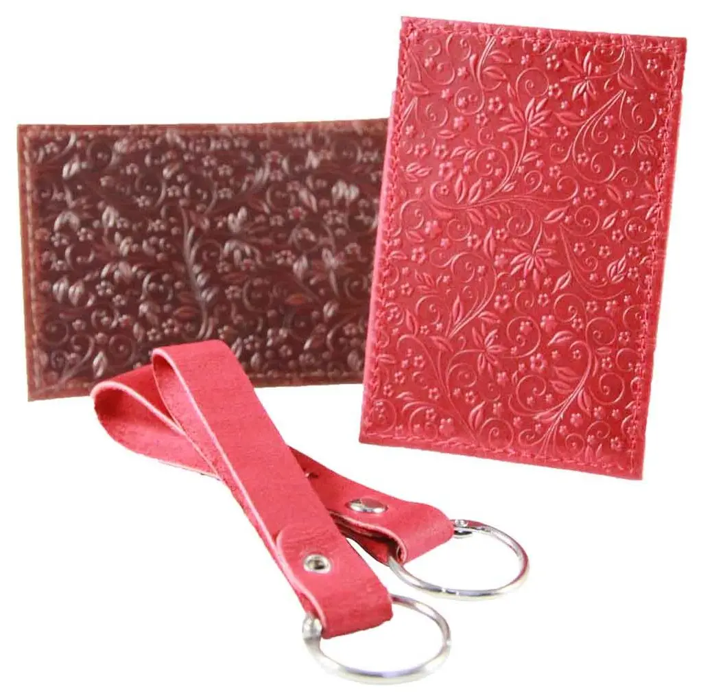 Обложка для проездного билета из натуральной кожи, красный, сплошное тиснение по коже "Флаверс"
