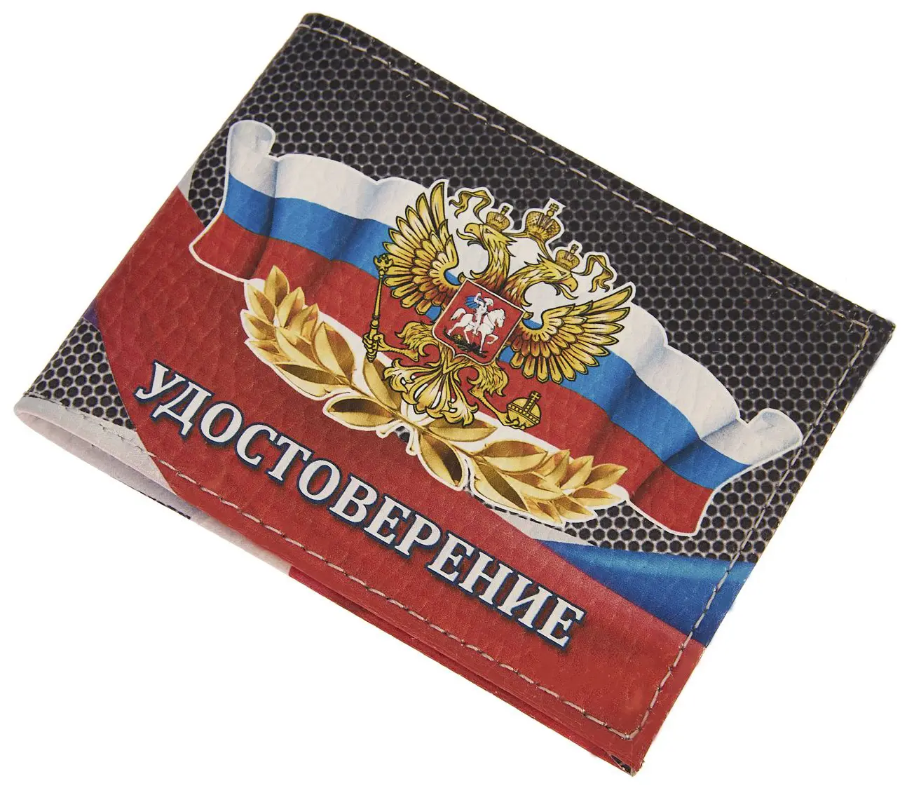 Обложка для удостоверения из натуральной кожи, с цветной рисунок по коже "Герб/Флаг"