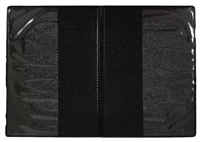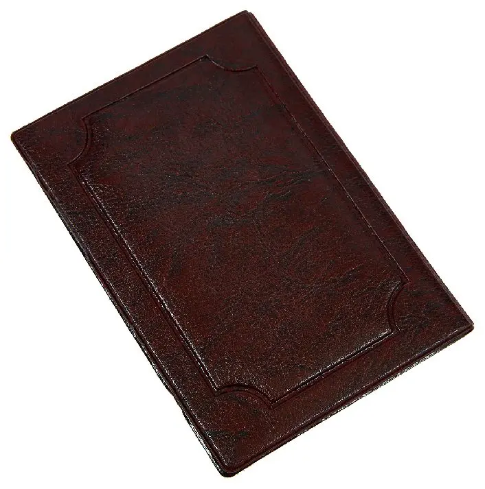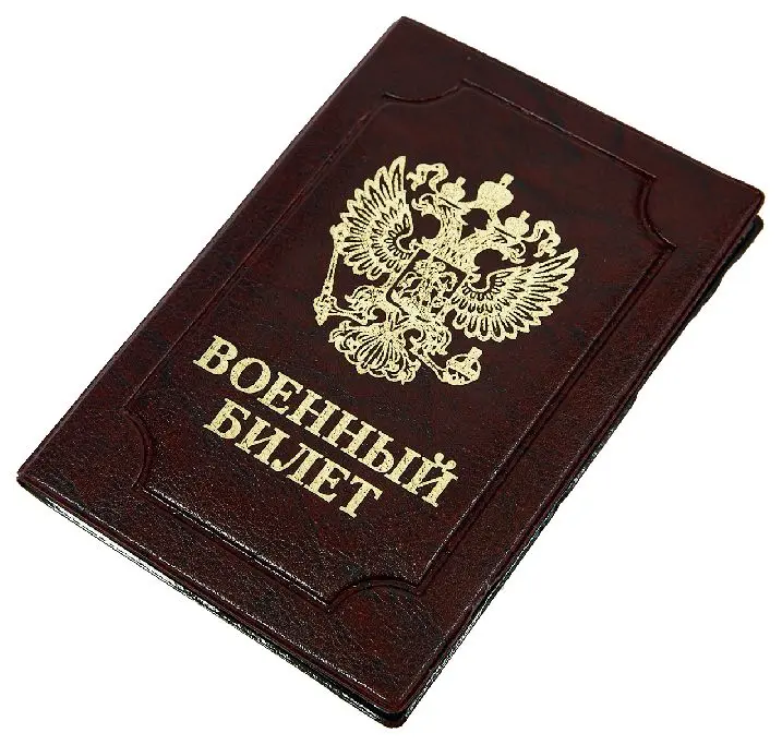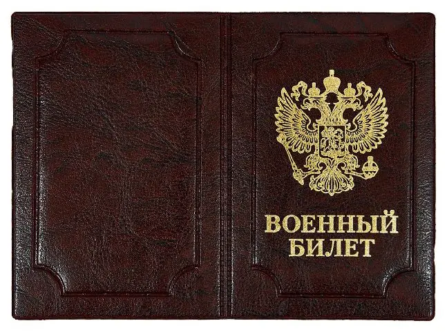 Обложка для военного билета из искусственной кожи, выполнена в красном цвете. На лицевой стороне методом тиснения золотой фольгой нанесено изображение герба Российской Федерации и надпись "ВОЕННЫЙ БИЛЕТ".