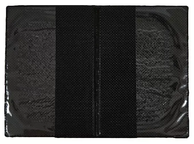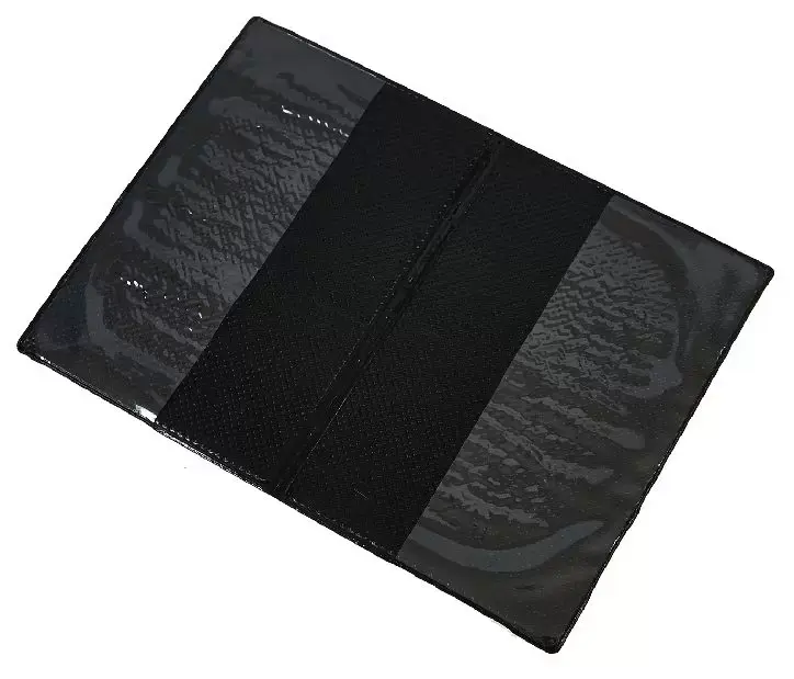 Обложка для военного билета из искусственной кожи, выполнена в черном цвете. На лицевой стороне методом тиснения золотой фольгой нанесено изображение герба Российской Федерации и надпись "ВОЕННЫЙ БИЛЕТ".