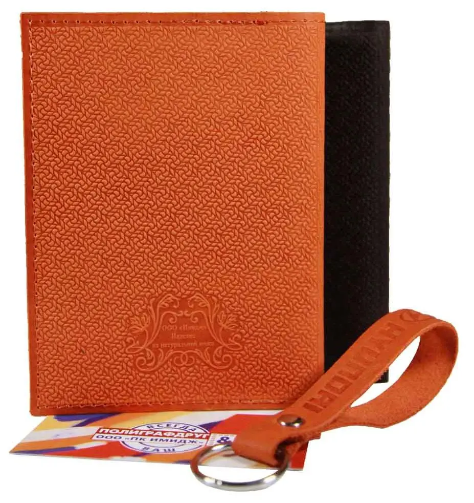 Обложка вертикальная,универсальная для паспорта и автодокументов из натуральной кожи. Выполнена в рыжем цвете способом художественного тиснения с эффектом рельефной кожи. На лицевой стороне в правом нижнем углу изображение пегаса, под ним надпись "DOCUMENTS". Внутри обложки есть кармашек, предназначенный для вкладыша под автодокументы и отделение для паспорта, выполненное в том же стиле рельефной кожи с надптсью "PASSPORT".