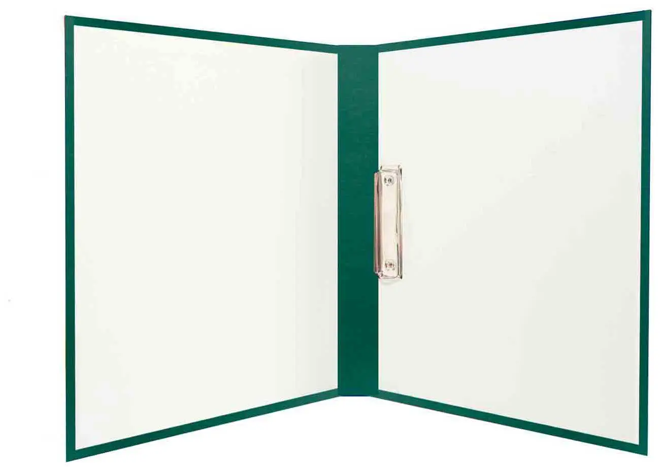 Папка адресная формата А4 (пухлая) с металлическим прижимным механизмом для бережного хранения документов без перфорации. Изготовлена из зеленого бумвинила с жестким корешком 20 мм. Внутри папка выклеена белой офсетной бумагой.