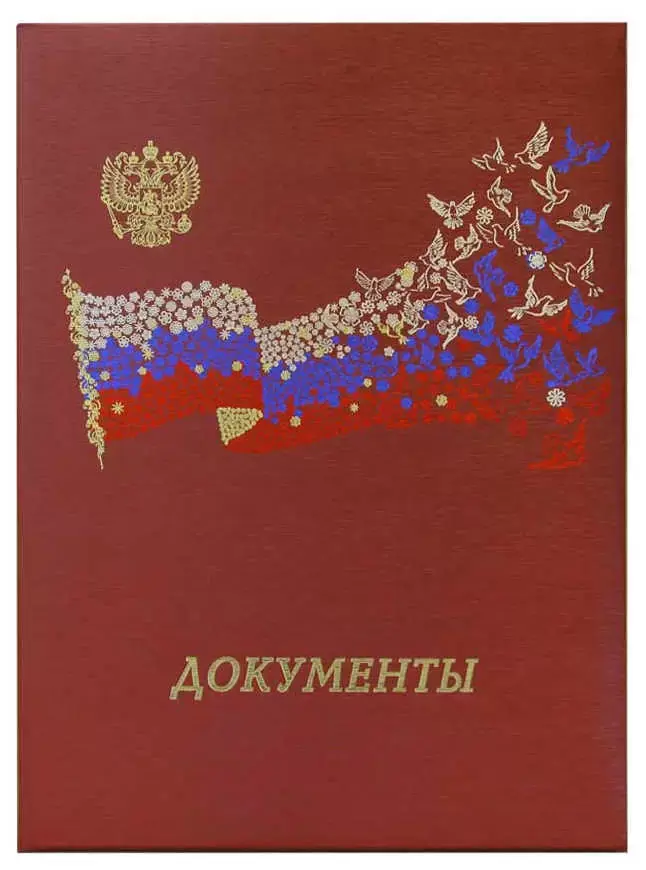 Папка адресная балакрон "Летящий флаг" А4 (пухлая) "Документы" шелк красный