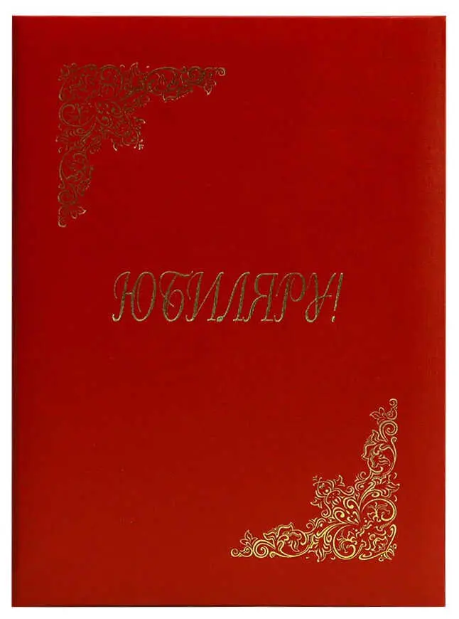 Адресная папка мягкая формата А4 изготовлена из бумвинила бордового цвета. Внутренние вклейки — белая офсетная бумага. На обложку методом тиснения золотой фольгой нанесена надпись. Адресная папка подходит для поздравлений.