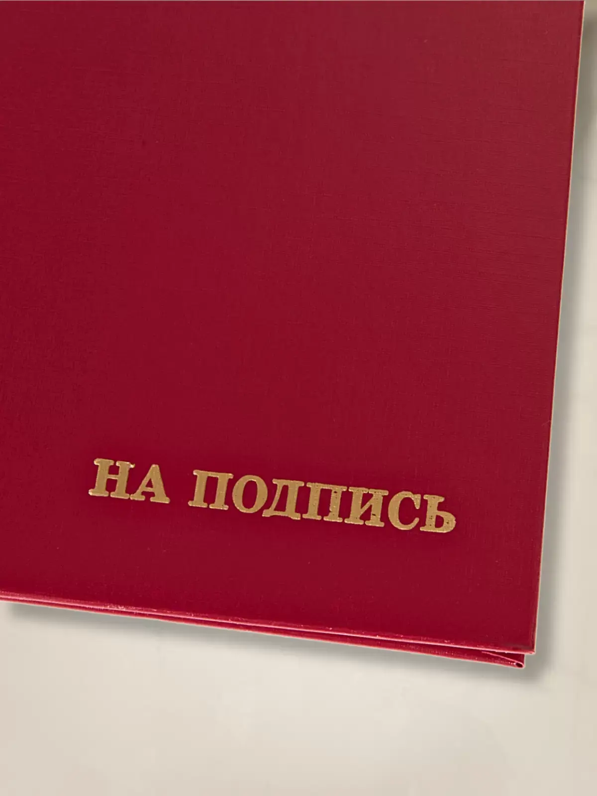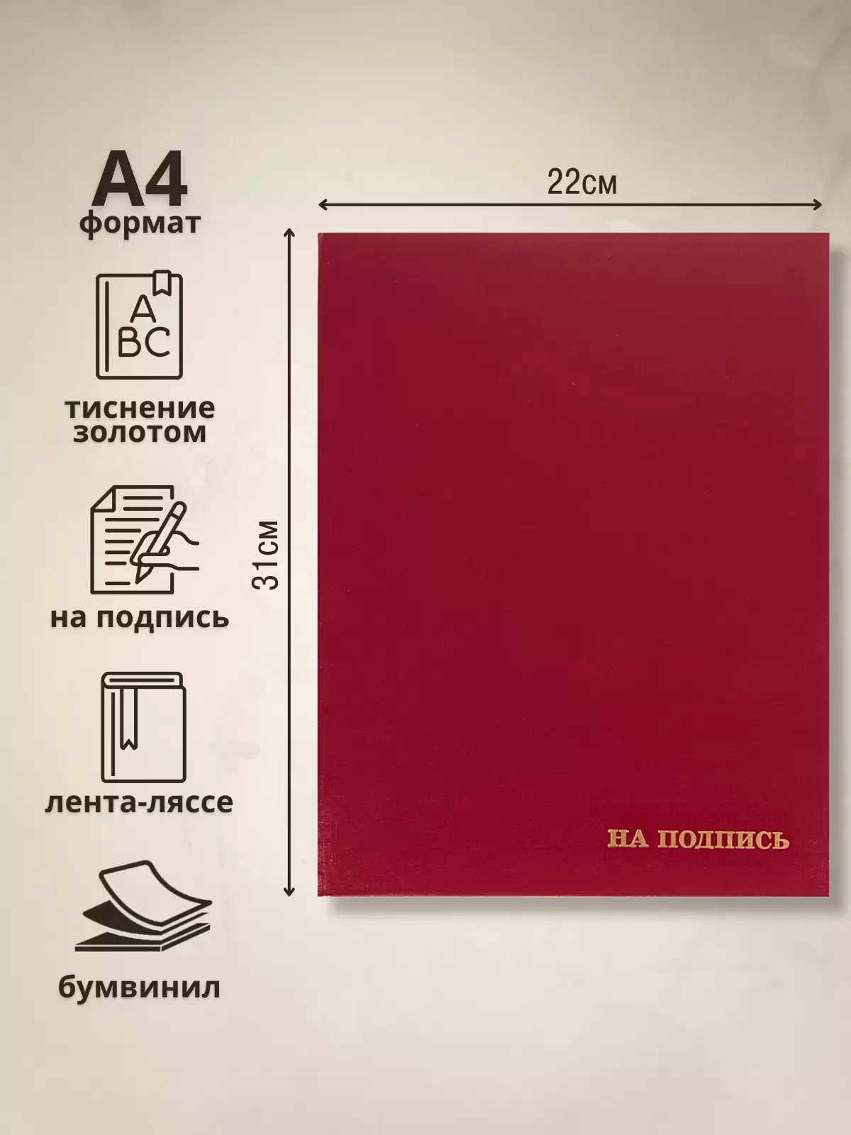 Папка адресная бумвинил А4 (пухлая) "На подпись" бордовая с ляссе