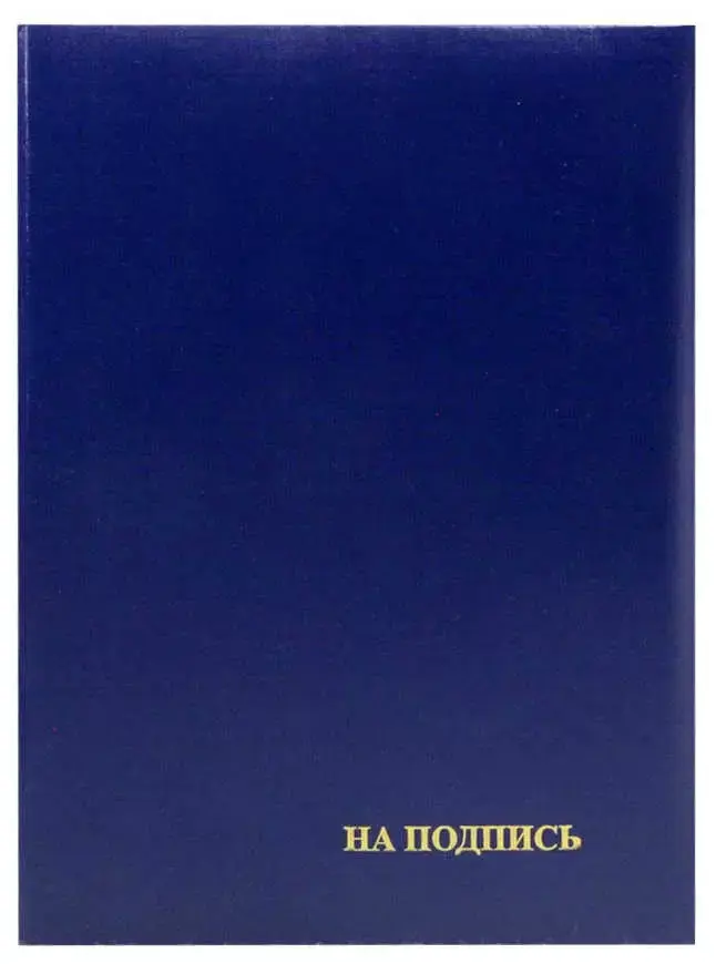 Адресная папка мягкая формата А4 изготовлена из бумвинила синего цвета. Внутренние вклейки — белая офсетная бумага. На обложку методом тиснения золотой фольгой нанесена надпись. Адресная папка подходит для поздравлений, хранения документов, а также подачи их на подпись.