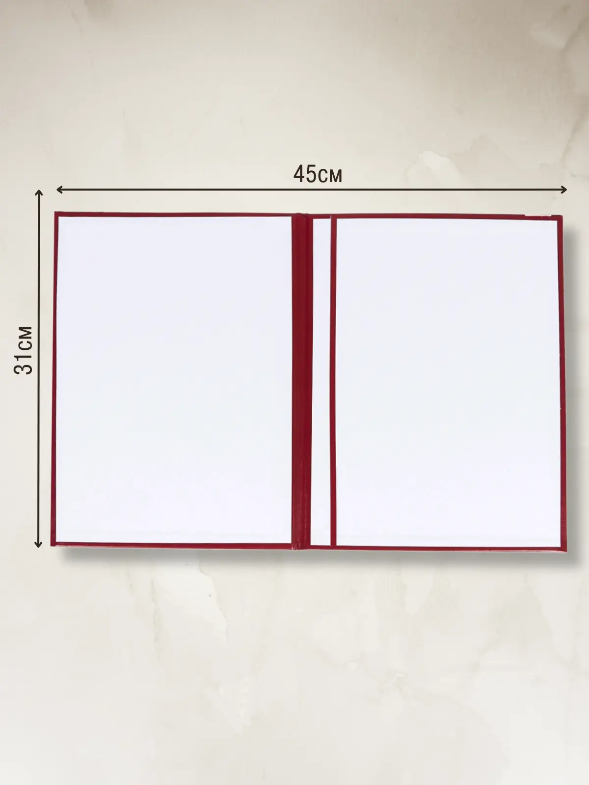 Адресная папка мягкая формата А4 изготовлена из бумвинила бордового цвета. Внутренние вклейки — белая офсетная бумага. На обложку методом тиснения золотой фольгой нанесена надпись. Адресная папка подходит для поздравлений.