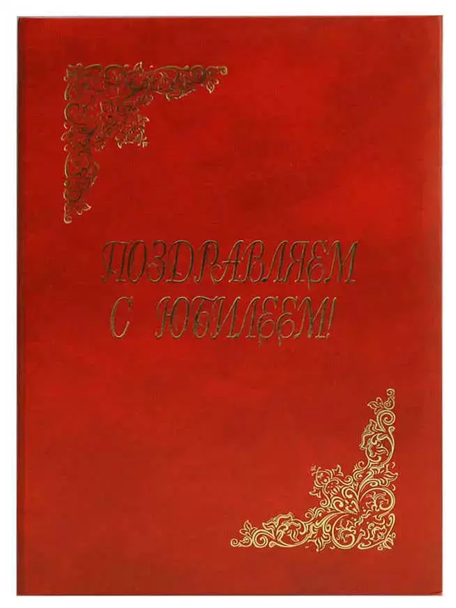 Адресная папка мягкая формата А4 изготовлена из бумвинила бордового цвета, с разводами. Внутренние вклейки — белая офсетная бумага. На обложку методом тиснения золотой фольгой нанесена надпись. Адресная папка подходит для поздравлений.
