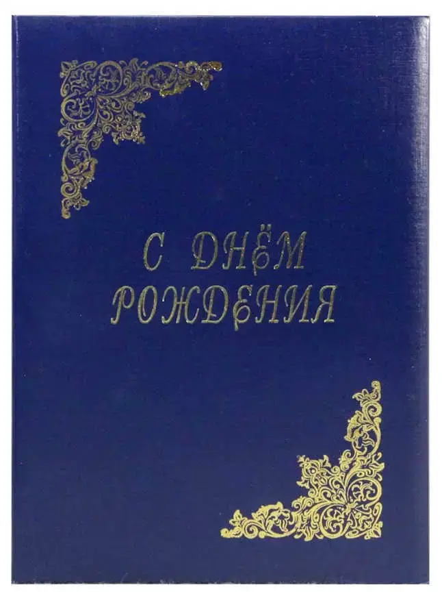 Адресная папка мягкая формата А4 изготовлена из бумвинила синего цвета. Внутренние вклейки — белая офсетная бумага. На обложку методом тиснения золотой фольгой нанесена надпись. Адресная папка подходит для поздравлений и хранения документов.