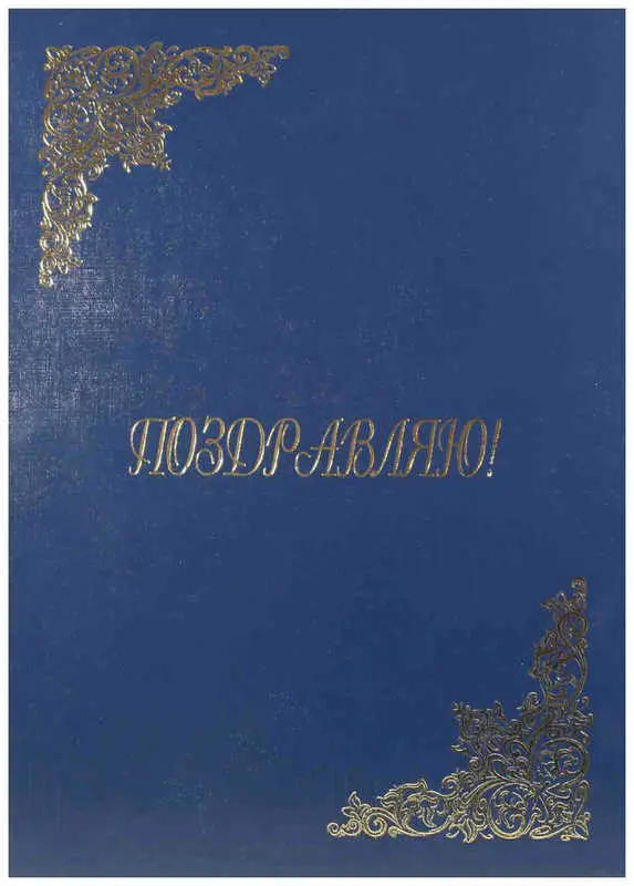 Адресная папка жесткая формата А4 изготовлена из бумвинила синего цвета. Внутренние вклейки — белая офсетная бумага. На обложку методом тиснения золотой фольгой нанесена надпись. Адресная папка подходит для поздравлений, хранения документов, а также подачиих на подпись.