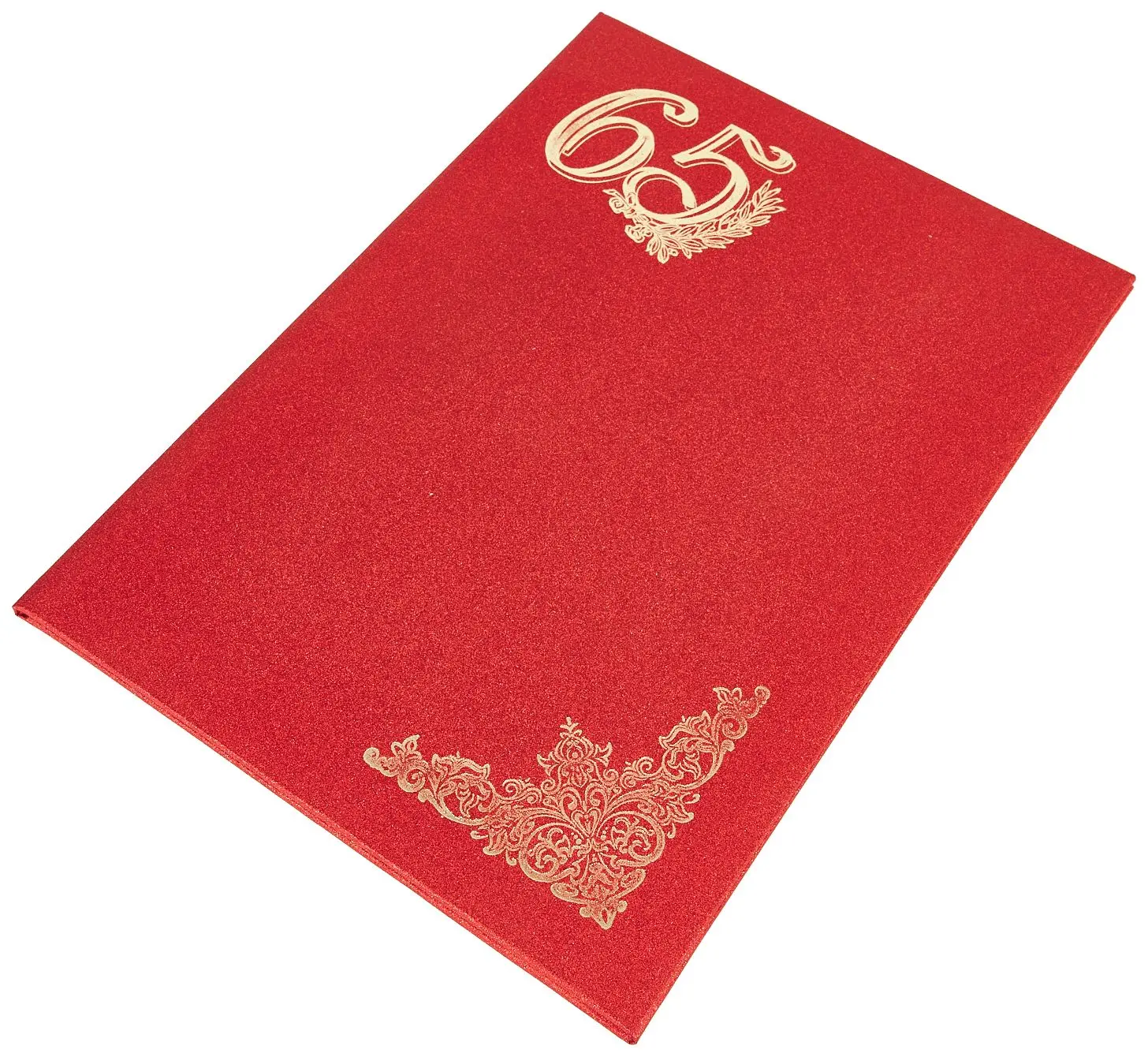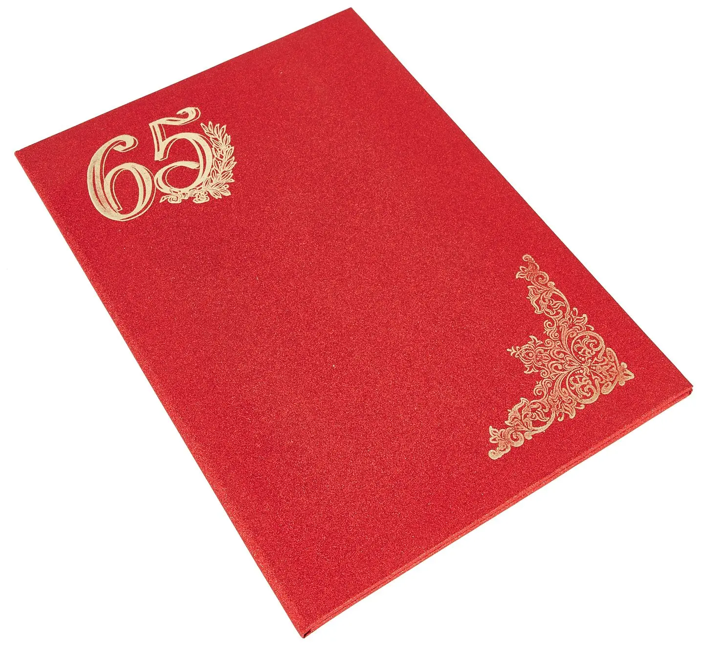 Папка адресная дизайнерские материалы А4 (пухлая) "65 лет" пыль красная