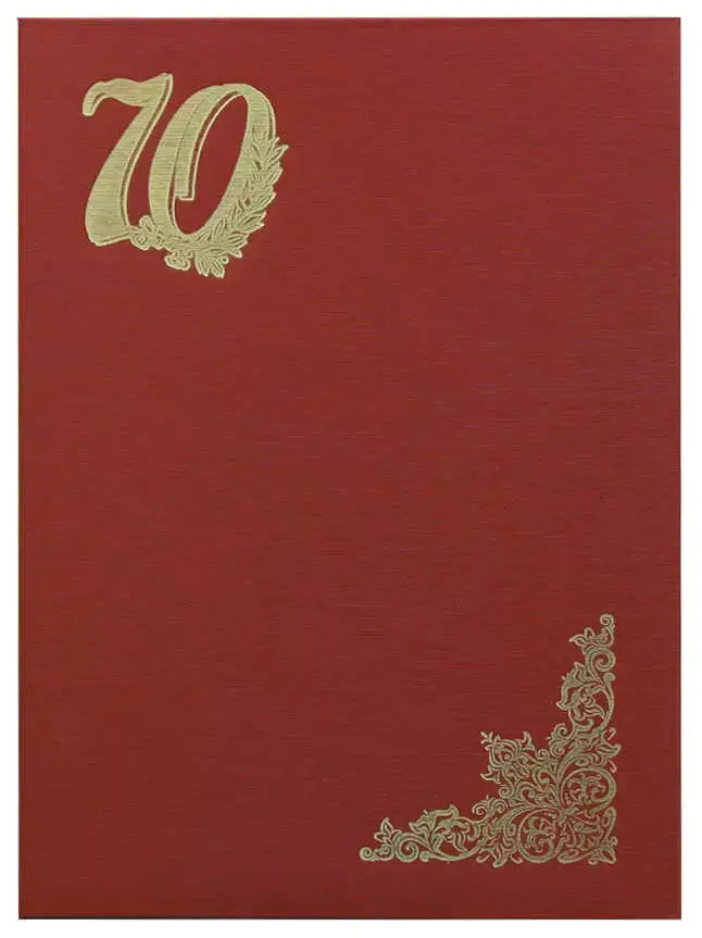 Папка адресная дизайнерские материалы А4 (пухлая) "70 лет" шелк красный